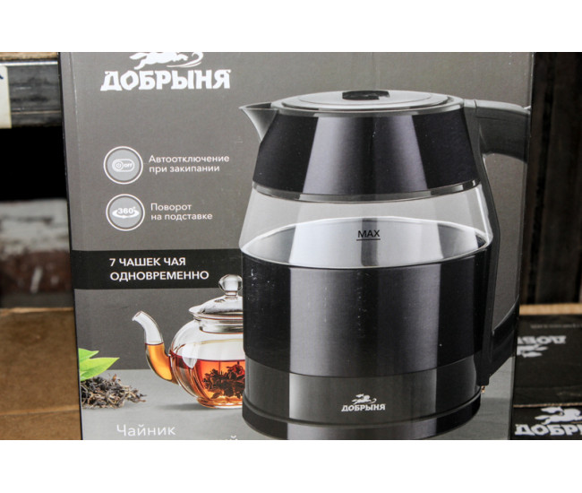 Чайник Добрыня эл. DO-1267D 1,8л 1800Вт стекло металл,чернильные вставки