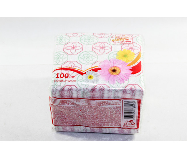 | Наименование | Салфетка стол "Семья и Комфорт" 1сл 100шт Решетка (24*24)*48 0136 |