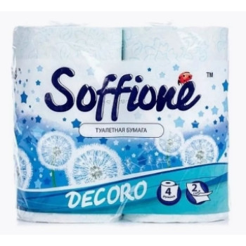 | Наименование | Туалетная бумага SOFFIONE 2слоя 4 рулона Decoro Blue (голубая)*16 0273 |