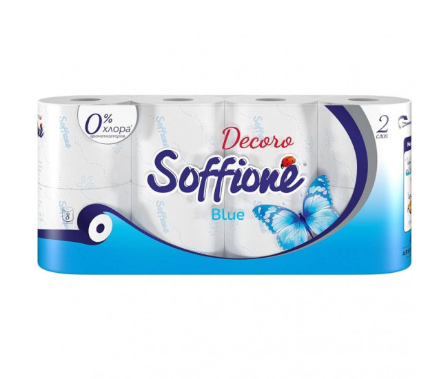 | Наименование | Туалетная бумага SOFFIONE 2слоя 8 рулона Decoro Blue (голубая)/5 0358 |