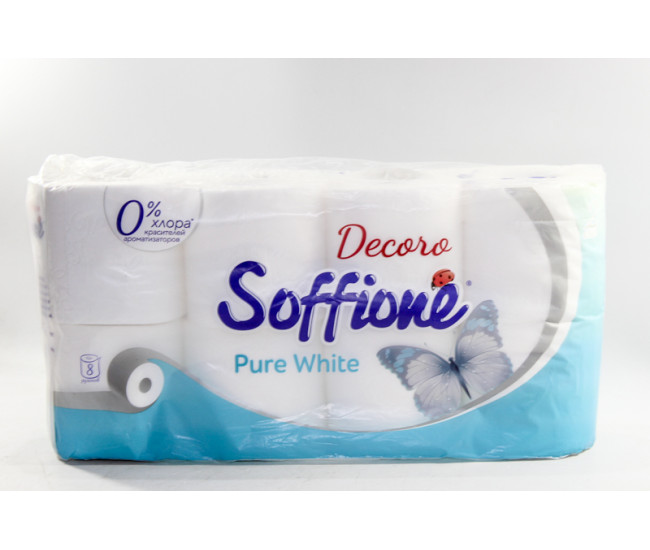 | Наименование | Туалетная бумага SOFFIONE 2слоя 8 рулона Pure White (белая) 0037 |