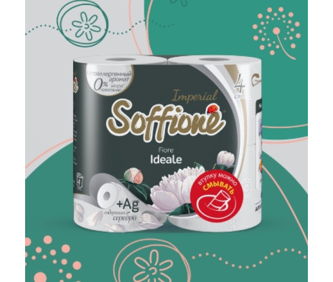 | Наименование | Туалетная бумага SOFFIONE 4слоя 4 рулона Imperial Flore Ideale (белая)*10 2727 |
