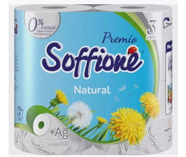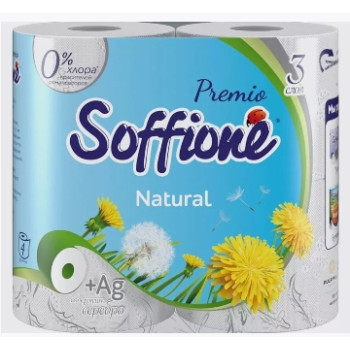 | Наименование | Туалетная бумага SOFFIONE Premio 3слоя 4 рулона Natural (белая)*10 0051 |