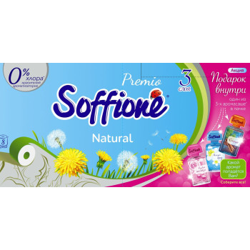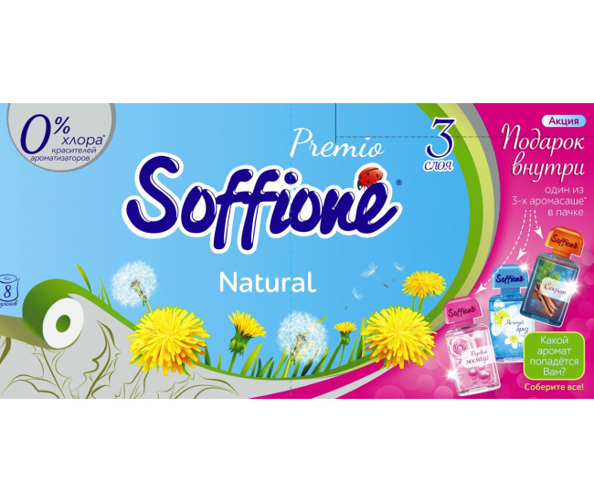 | Наименование | Туалетная бумага SOFFIONE Premio 3слоя 8 рулонов Natural (белая)*5 0075 |