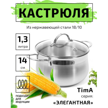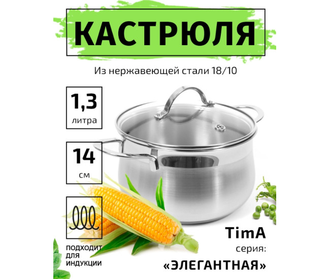 | Наименование | Кастрюля TimA Элегантная 1,3л 0,6мм с крышкой инд. дно Э-1413*8 8229 |