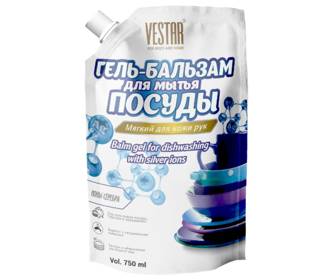 | Наименование | Гель-бальзам д/мытья посуды VESTAR 750мл Ионы серебра (дой-пак) *8 1366 |