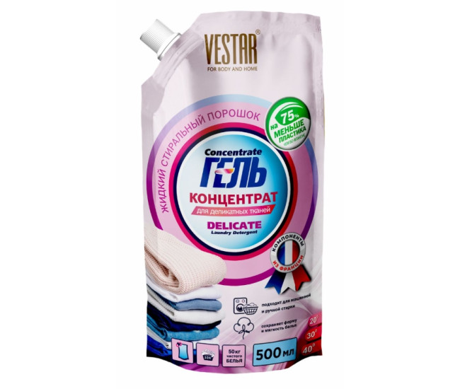 | Наименование | Гель д/стирки VESTAR 500мл Для деликатных тканей (дой-пак)*12 1601 |