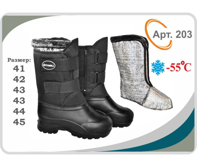 | Наименование | Сапоги муж №203 41-46 липучка+молния+носок -50 (прод по 6) |