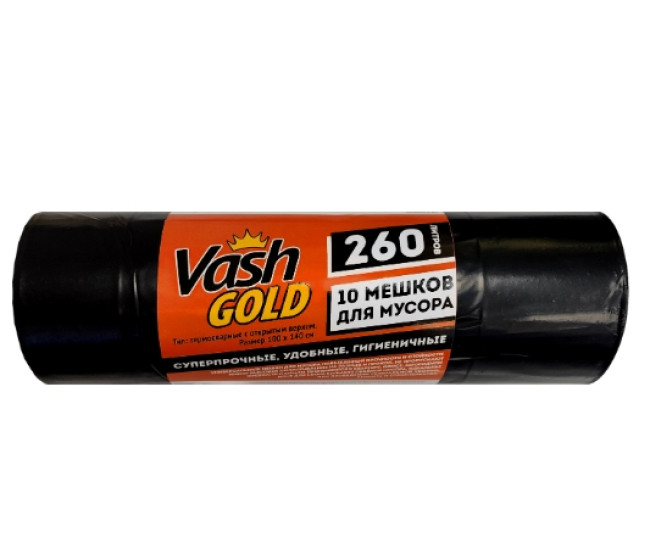 Мешки д/мусора ПВД Vash Gold 260л 60мкм черные 10ш/рул*10 9011
