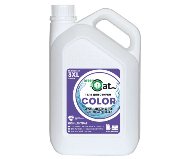 Гель д/стирки Green Cat 3000мл для цветн. и линяющего*6 8489