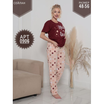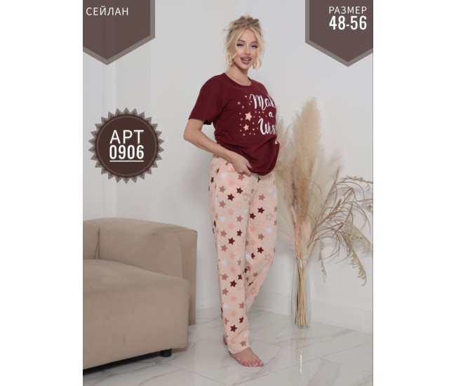 | Наименование | Пижама жен. Ceylan (кофта+штаны) 48-56р (прод по 5) 0906 бордо |