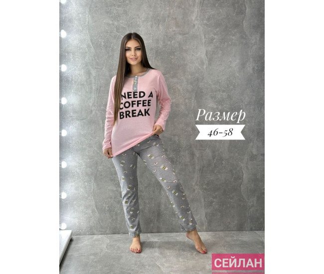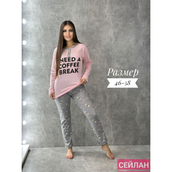 | Наименование | Пижама жен. Ceylan (кофта+штаны) 48-60р (прод по 7) буквы розов |