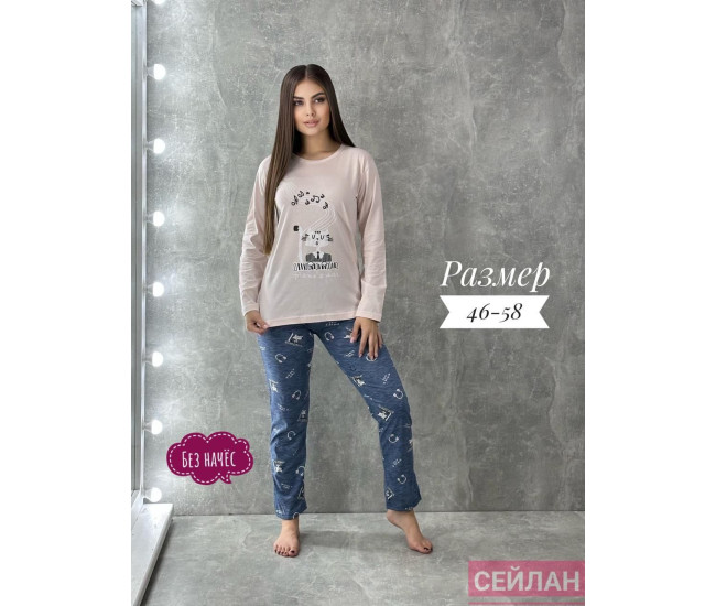 Пижама жен. Ceylan (кофта+штаны) 48-60р (прод по 7) буквы розов