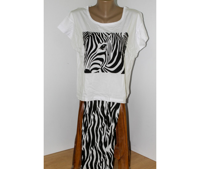 | Наименование | Пижама жен Мальвина (футболка+капри) 44-54р (прод по 6) 0109 зебра |