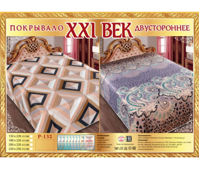Наименование Покрывало "ХХI век" сатин двухстр. 200х220 P-132