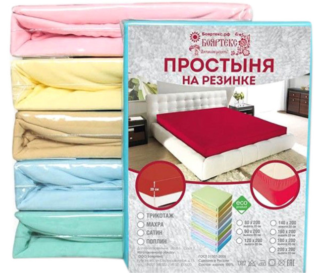 Наименование Простынь на рез. трикотаж 180х200 белый 4342