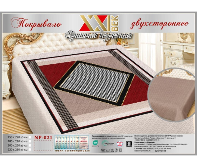 Наименование Покрывало "Элитная коллекция" сатин двухстр. 150х220 NP-021