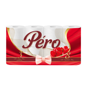 Наименование Туалетная бумага PERO Tulip 3 слоя 8 рул 16,3 м белый 0575