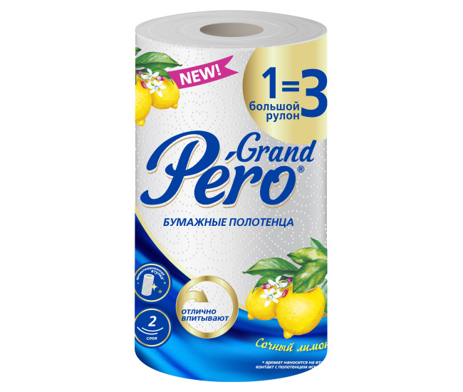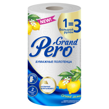 | Наименование | Полотенца бумажные GRAND PERO 1=3 Лимон 2 слоя 27 м 1 рулон белый *15 1893 |