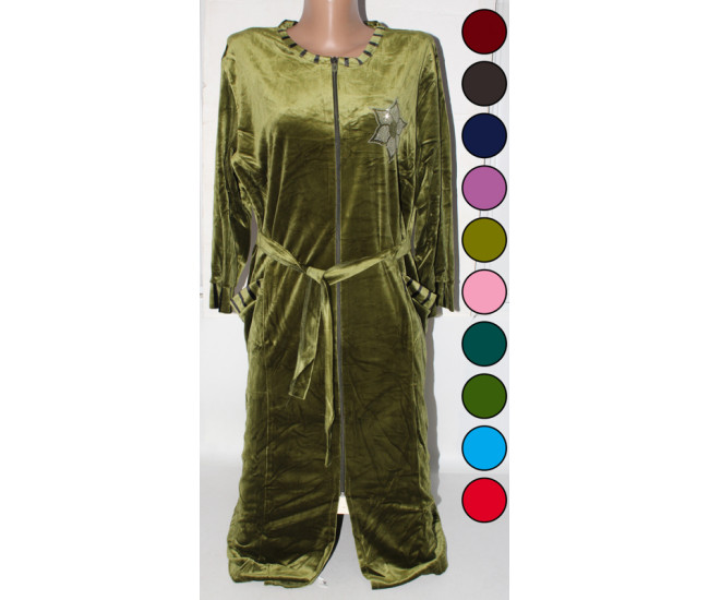 Халат жен. Zaman велюр на молнии 50-60р (прод по 6) салат