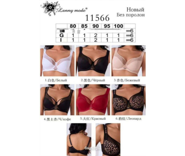 | Наименование | Бюстгалтер "E" Lanny Mode 11566 (80-100) (прод. по 6) черный |