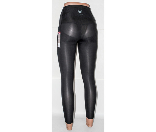 Легинсы жен. "ЛАН Ю" (M-XL) кожа акулы (прод по 3) Т-002 черный рубчик тонкие
