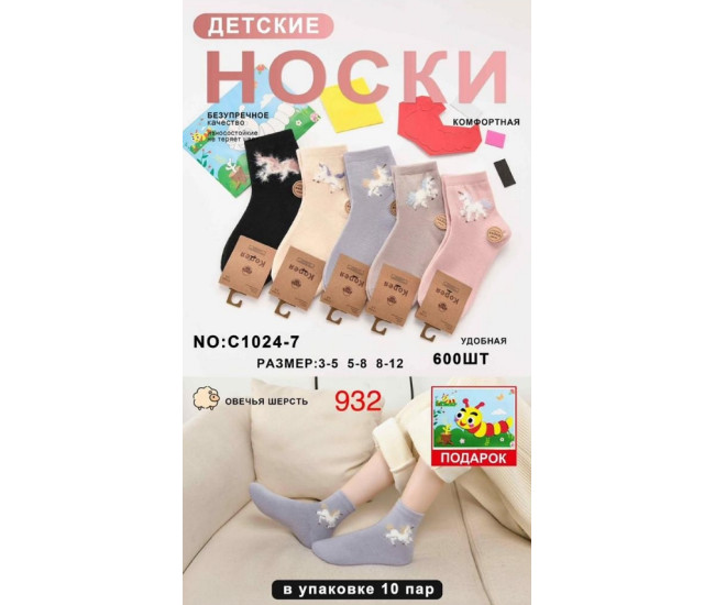 | Наименование | Носки детс. дев. кашемир "Корея" (3-5) (прод по 10) С 1024-7 |