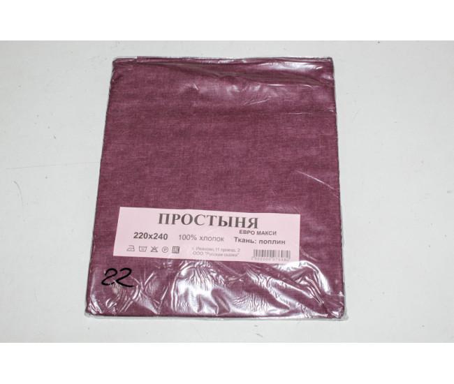 Наименование Простыня ИВТЕКС поплин 220/240 № 22