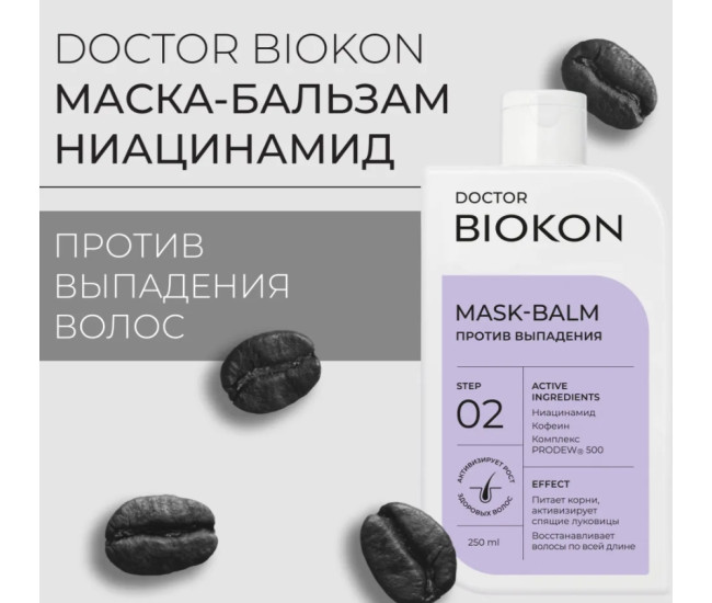 | Наименование | Маска-бальзам Doctor Biokon против выпадения волос "Ниацинамид" ,250 мл 6494 |