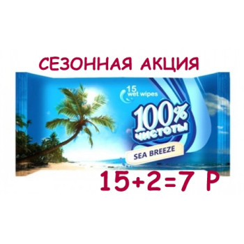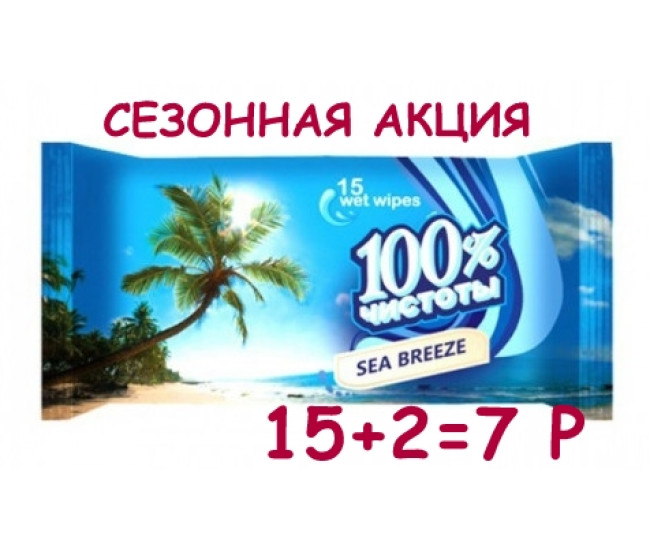 Салфетки влаж 15шт 100% ЧИСТОТЫ морская свежесть *160 0028/1 *(, 01.01.2030)*