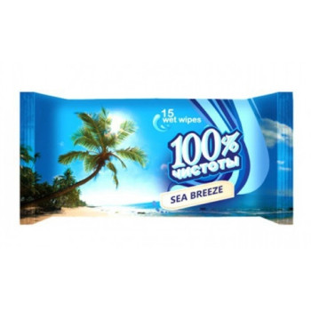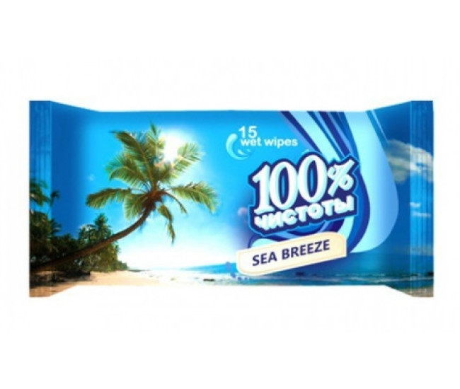 Салфетки влаж 15шт 100% ЧИСТОТЫ морская свежесть *160 0028/1 *(, 01.01.2030)*