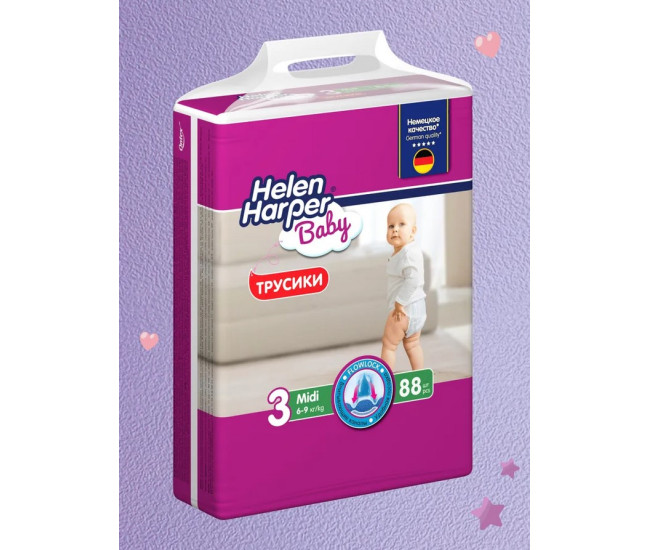 | Наименование | Подгузники-трусики детс. Helen Harper Baby Midi р 3 (6-9 кг) 88шт 2744 *(002, 17.06.2028)* |