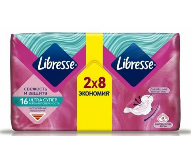 | Наименование | Прокладки "LIBRESSE" Ultra Super DUO 16шт 5кап *12 7483 |