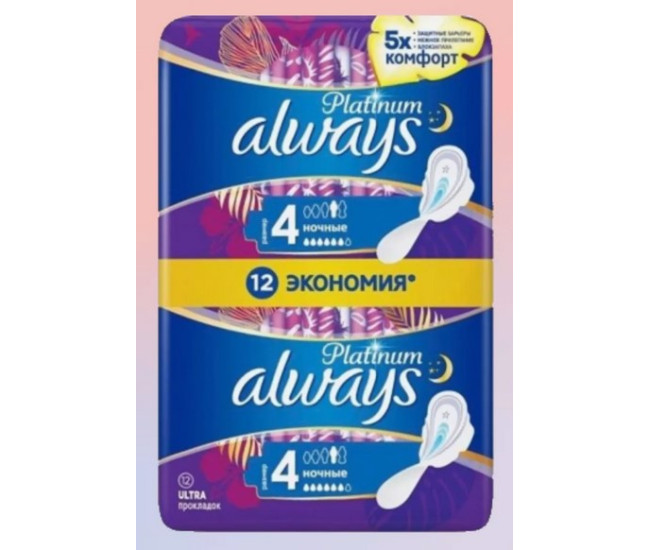 | Наименование | Прокладки "ALWAYS" Platinum Ultra Night (Duo) 12шт*10 0748 |