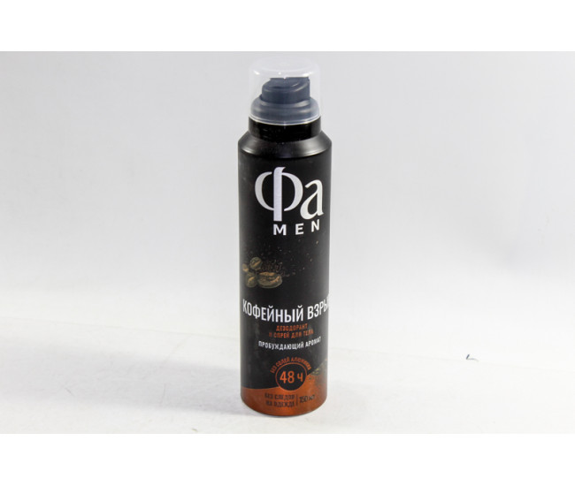 | Наименование | Дезодорант муж "FA" спрей 150мл Кофейный взрыв 3527 |