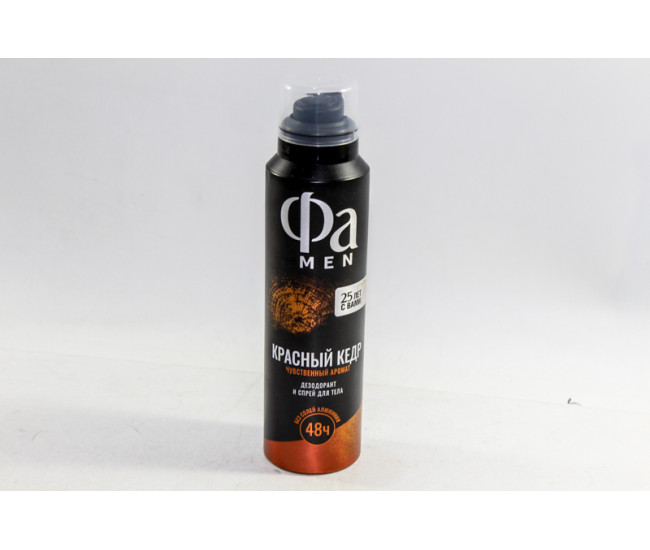| Наименование | Дезодорант муж "FA" спрей 150мл Красный кедр 3565 |