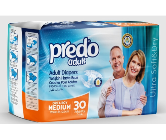 | Наименование | Подгузники для взрослых Predo Medium (85-125см) 30шт/4 4130 (шт.) "$" |