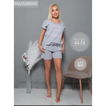 | Наименование | Пижама жен Мальвина (футболка+шорты) 44-54р (прод по 6) 44117 |