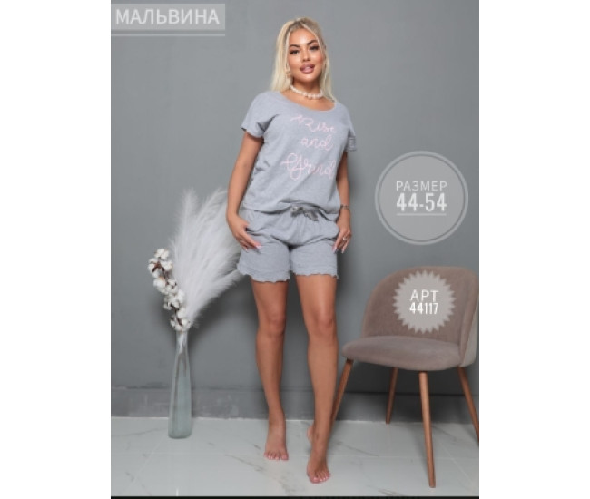 Пижама жен Мальвина (футболка+шорты) 44-54р (прод по 6) 44119 св.серый
