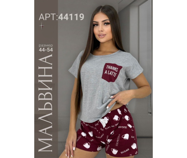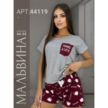 | Наименование | Пижама жен Мальвина (футболка+шорты) 44-54р (прод по 6) 44119 св.серый |