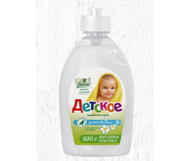 | Наименование | Мыло жидкое ВЕСНА Детское 500гр с экстрактом Ромашки *10 4423 |