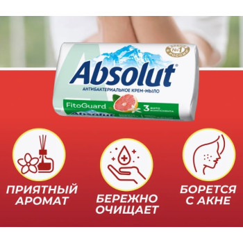 | Наименование | Мыло твердое ABSOLUT DeoEffect антибактер Грейпфрут и бергамот 90г*6 4515 |