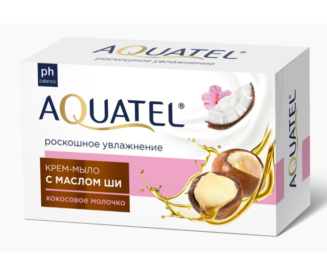 | Наименование | Мыло-крем твердое AQUATEL 90р Кокосовое молочко (масло ШИ) 0318 |