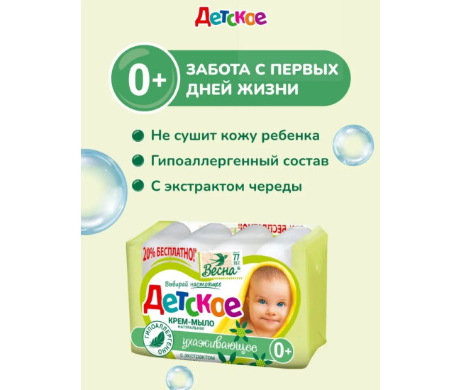 Мыло-крем твердое ВЕСНА Детское 90г регенерирующее с экстрактом Череды*6 4028 *(, 01.03.2028)*