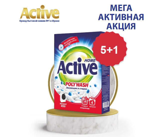 | Наименование | Стир порошок ACTIVE ИРАН "Poly Wash" автомат Polymer Enzyme 450г холод. стирка 0996 |