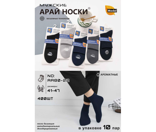Наименование Носки муж. "АРАЙ" (41-47) (прод по 10) АА 80-22