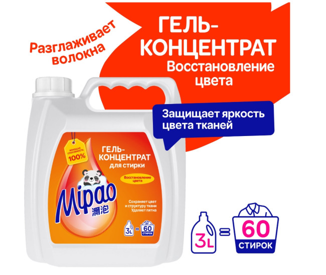 | Наименование | Гель д/стирки концентр.MIPAO с универ. эфектом восст/цвета 3л *4 1646 |