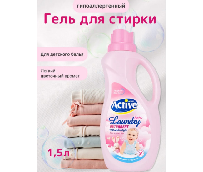Гель д/стирки ACTIVE ИРАН д/детского белья "Розовая Пудра" 1500мл*9 1245