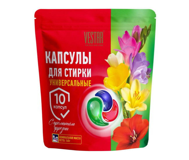 | Наименование | Капсулы д/стирки VESTAR 10шт*15 Универсальные с ароматом фрезии 0432 |