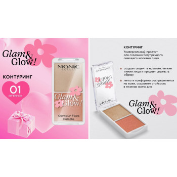 Контуринг MONIC BEAUTY "Glam&Glow! Contour Face Palette 02 Fascinated хайлайтер+контур 2218